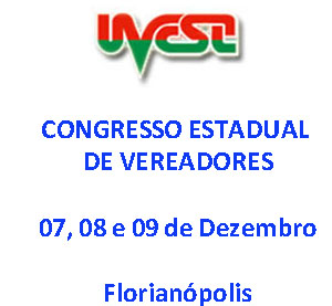 O Congresso Estadual de Vereadores 2011 será realizado nos dias 07, 08 e 09 de Dezembro na Universidade Federal de Santa Catarina - UFSC, em Florianópolis, e deverá receber 800 vereadores e servidores de câmaras do estado. Um grupo de vereadores ligados...