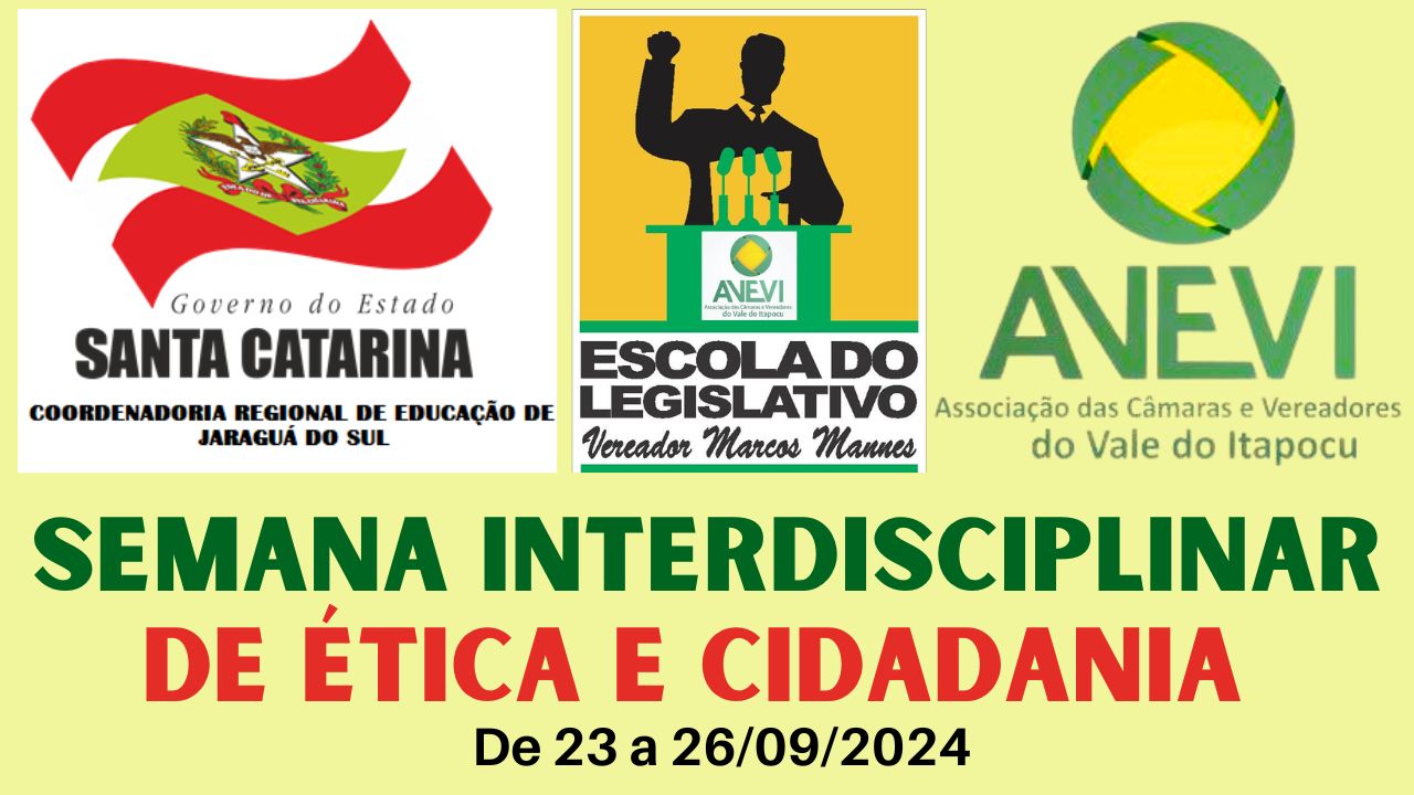 A Coordenadoria Regional de Educação de Jaraguá do Sul (CRE) e a Associação de Câmaras e Vereadores do Vale do Itapocu – Avevi, definiram o tema, a data e a programação da Semana Interdisciplinar de Ética...